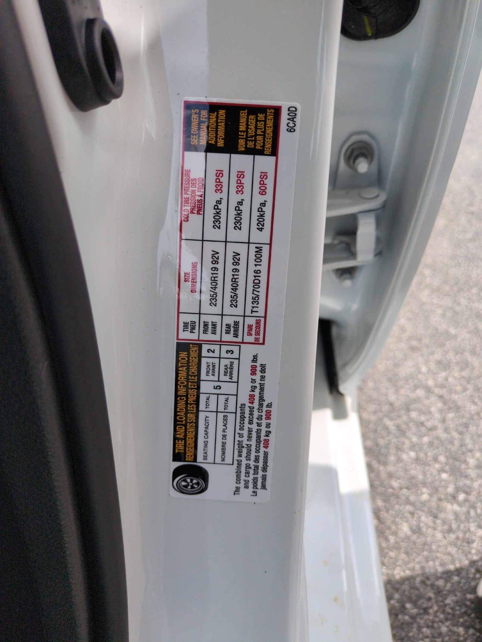 - Front Tire Size: P235/40VR19