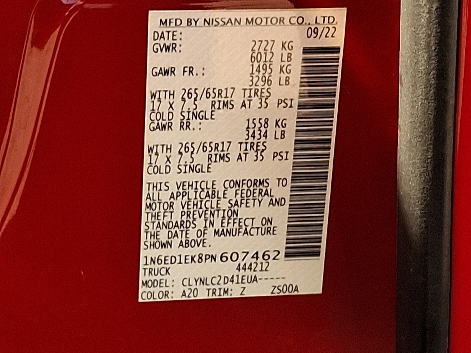 - Vehicle Name: Nissan Frontier